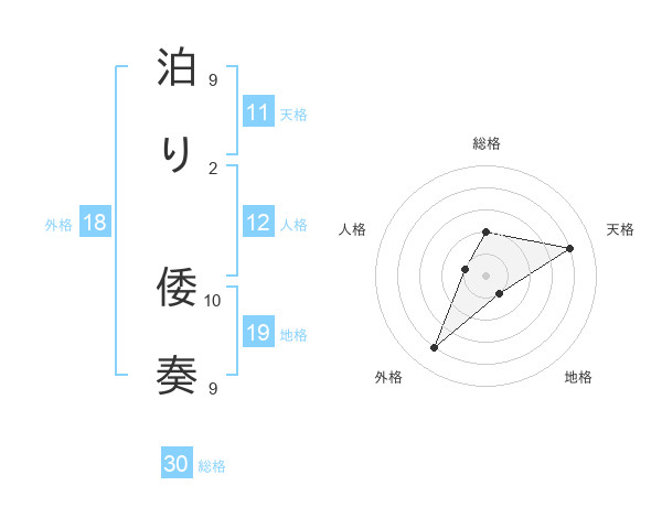 泊り 倭奏さんを姓名の画数から五運を鑑定