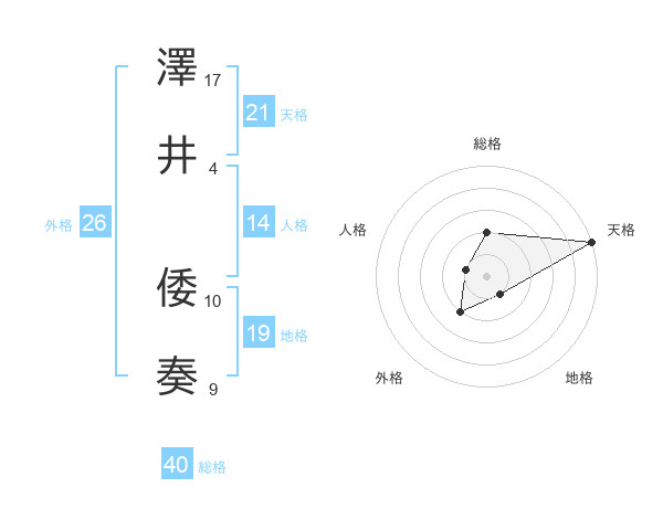 澤井 倭奏さんの天格は21画の5点!