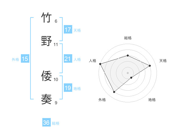 竹野 倭奏さんの天格は17画の4点!