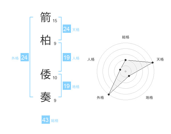 箭柏 倭奏さんの総格は43画の2点!