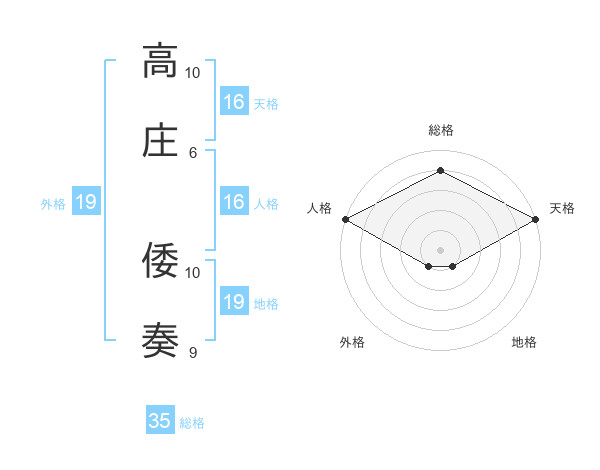 高庄 倭奏さんを姓名の画数から五運を鑑定