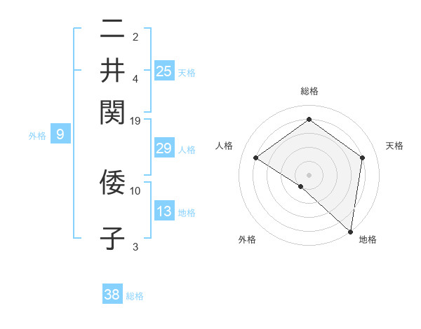 二井関 倭子さんを姓名の画数から五運を鑑定