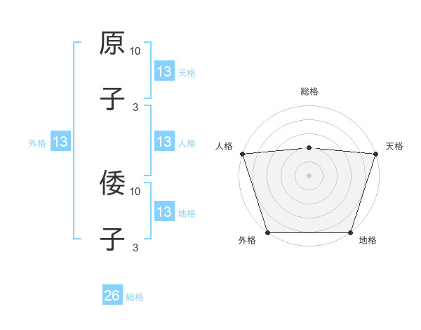 原子 倭子さんの外格は13画の5点!