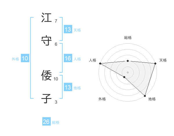 江守 倭子さんの天格は13画の5点!