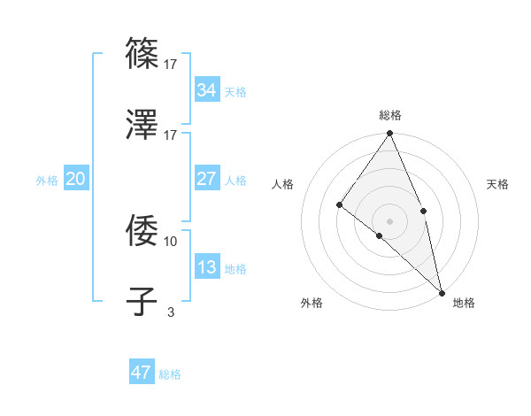 篠澤 倭子さんを姓名の画数から五運を鑑定