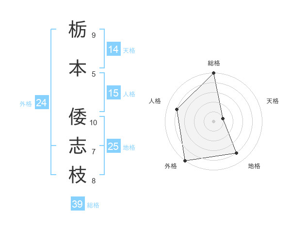 栃本 倭志枝さんの外格は24画の5点