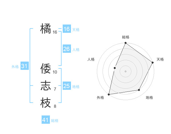 橘 倭志枝さんを姓名の画数から五運を鑑定