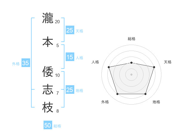 瀧本 倭志枝さんを姓名の画数から五運を鑑定