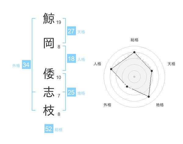 鯨岡 倭志枝さんを姓名の画数から五運を鑑定