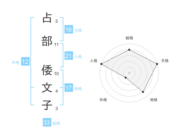 占部 倭文子さんを姓名の画数から五運を鑑定