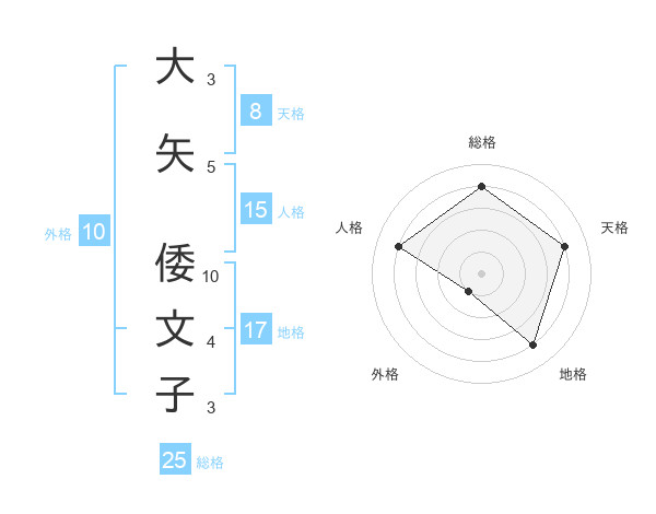 大矢 倭文子さんを姓名の画数から五運を鑑定