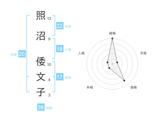 照沼 倭文子さんを姓名の画数から五運を鑑定