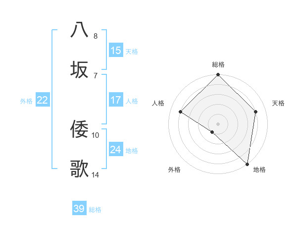 八坂 倭歌さんを姓名の画数から五運を鑑定