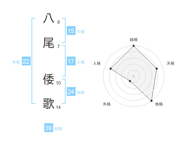 八尾 倭歌さんの総格は39画の5点!