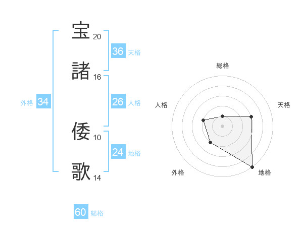 宝諸 倭歌さんの地格は24画の5点!