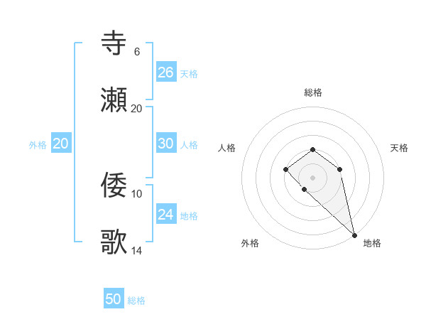 寺瀬 倭歌さんの総格は50画の2点!