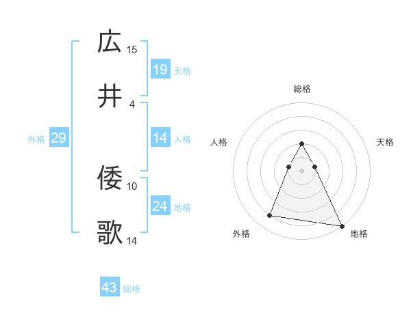 広井 倭歌さんの総格は43画の2点!