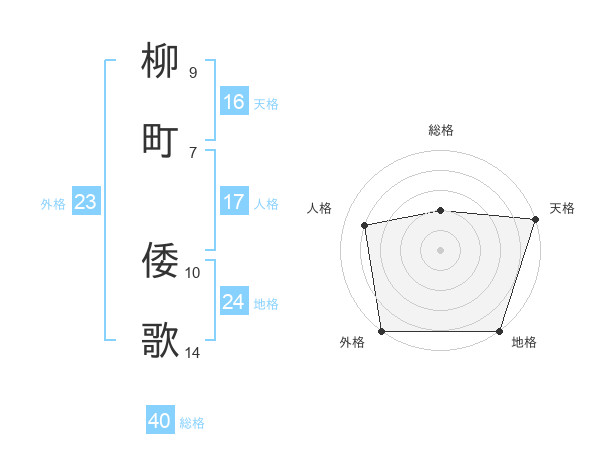 柳町 倭歌さんを姓名の画数から五運を鑑定