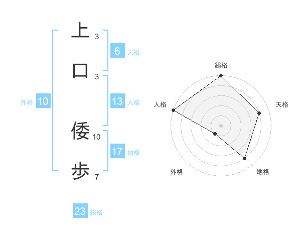 上口 倭歩さんの総格は23画の5点!