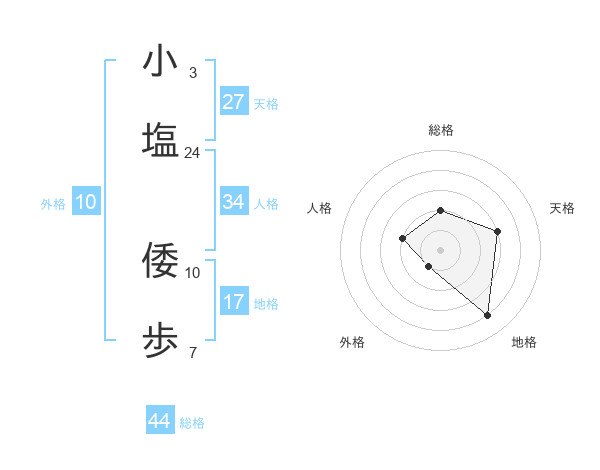 小塩 倭歩さんの総格は44画の2点!