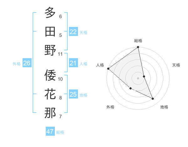 多田野 倭花那さんを姓名の画数から五運を鑑定