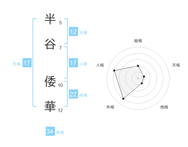 半谷 倭華さんを姓名の画数から五運を鑑定