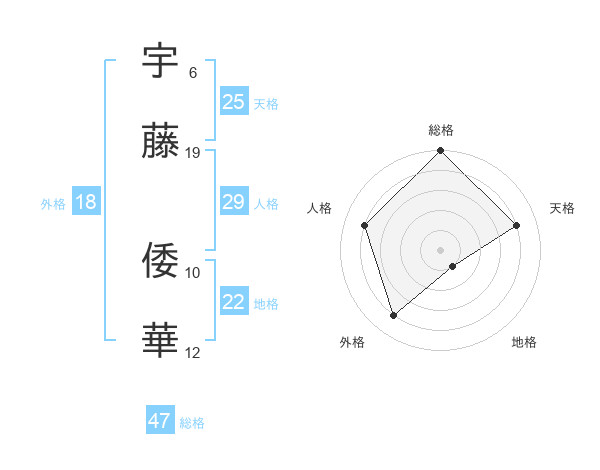 宇藤 倭華さんを姓名の画数から五運を鑑定