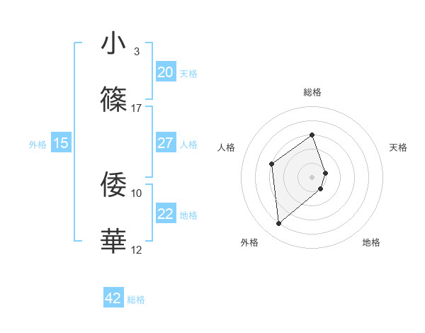 小篠 倭華さんを姓名の画数から五運を鑑定