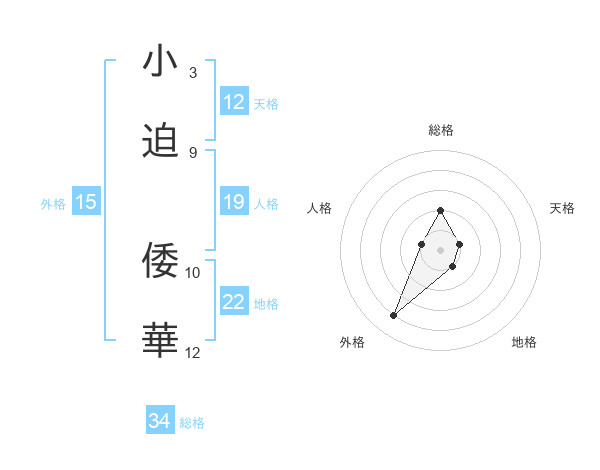 小迫 倭華さんの総格は34画の2点!