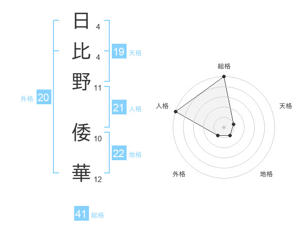 日比野 倭華さんの総格は41画の5点!