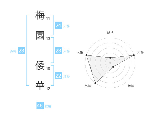 梅園 倭華さんを姓名の画数から五運を鑑定