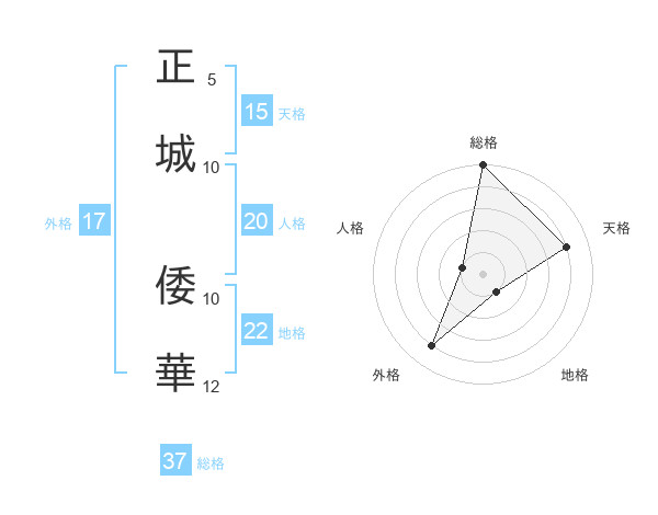 正城 倭華さんの総格は37画の5点!