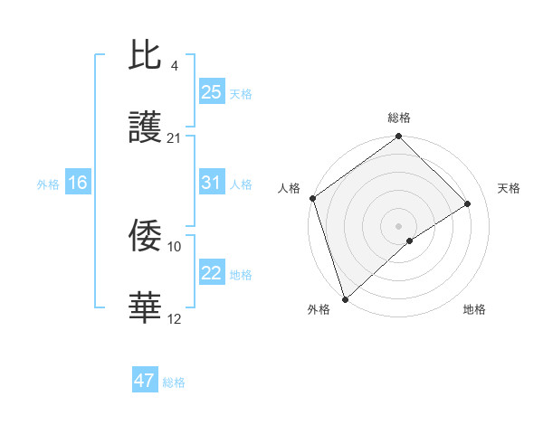 比護 倭華さんの総格は47画の5点!