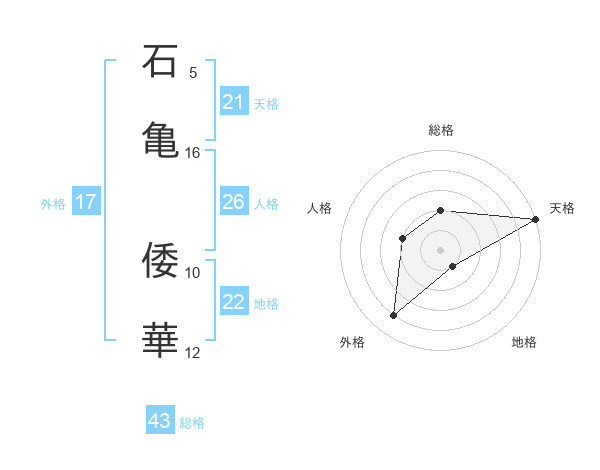 石亀 倭華さんの総格は43画の2点!
