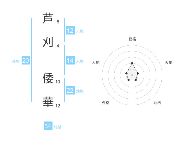 芦刈 倭華さんの総格は34画の2点!