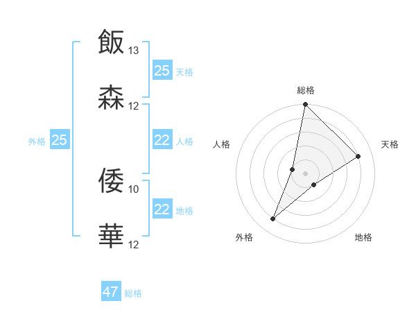 飯森 倭華さんの総格は47画の5点!