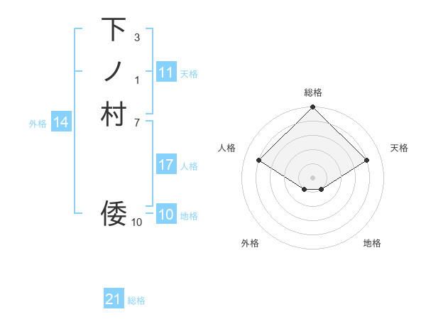 下ノ村 倭さんを姓名の画数から五運を鑑定