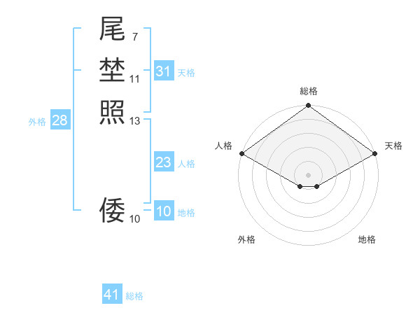 尾埜照 倭さんの天格は31画の5点!