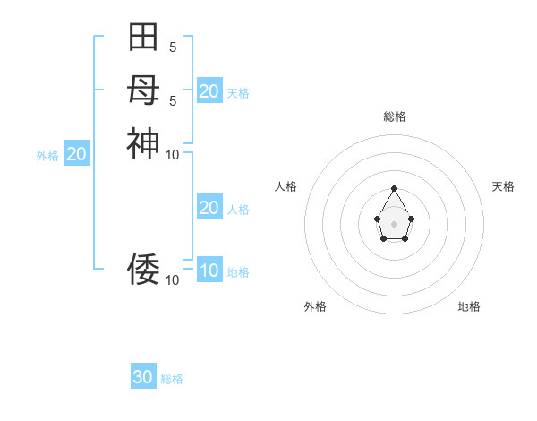 田母神 倭さんの天格は20画の1点!