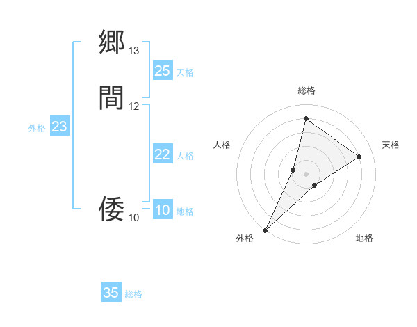 郷間 倭さんの外格は23画の5点!