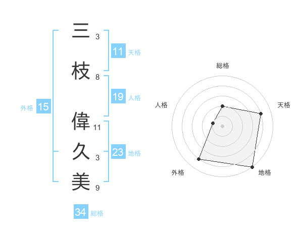 三枝 偉久美さんを姓名の画数から五運を鑑定
