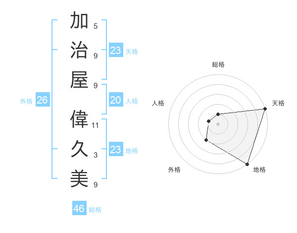 加治屋 偉久美さんを姓名の画数から五運を鑑定