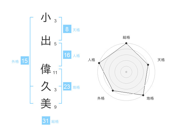小出 偉久美さんを姓名の画数から五運を鑑定