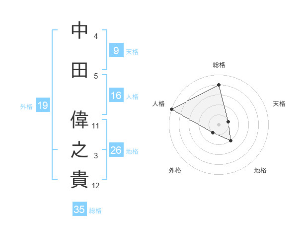 中田 偉之貴さんの総格は35画の4点!