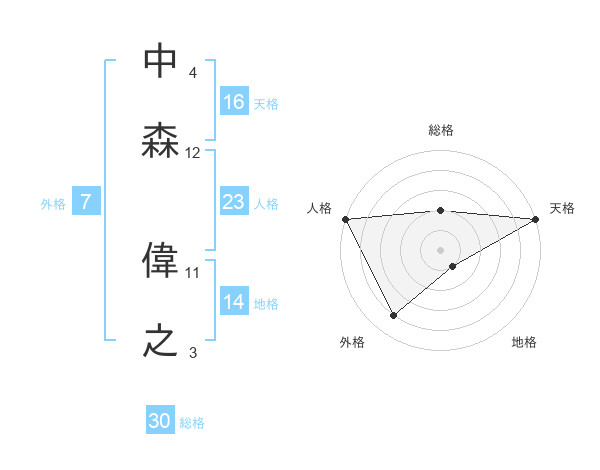 中森 偉之さんの総格は30画の2点!