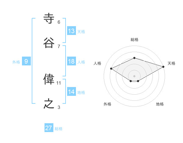 寺谷 偉之さんを姓名の画数から五運を鑑定