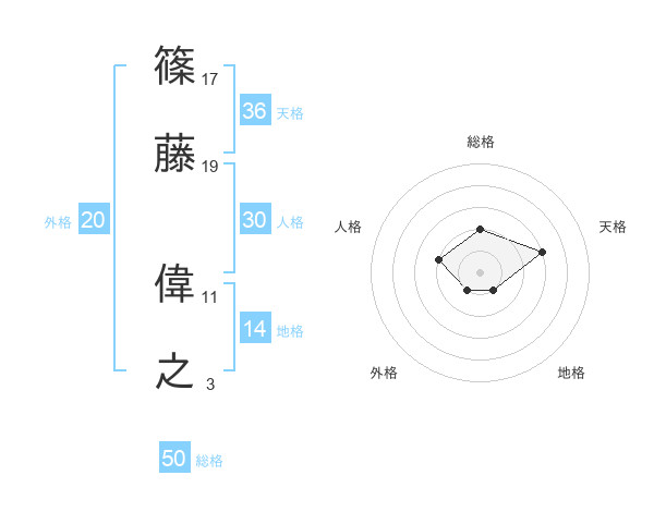 篠藤 偉之さんを姓名の画数から五運を鑑定