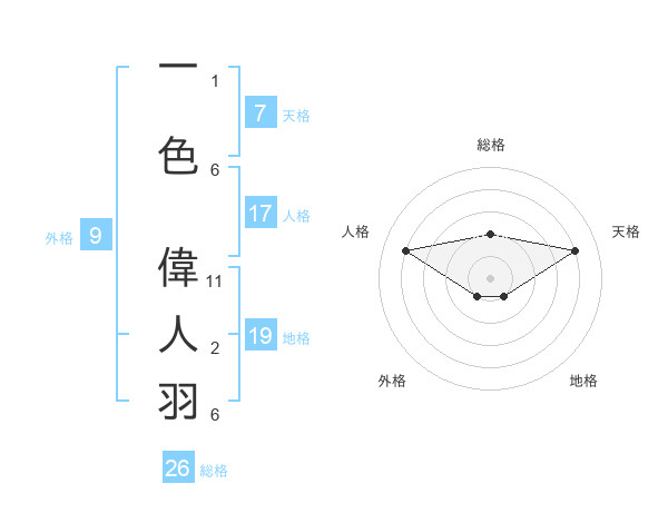 一色 偉人羽さんの総格は26画の2点!