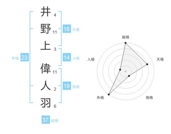 井野上 偉人羽さんの総格は37画の5点!