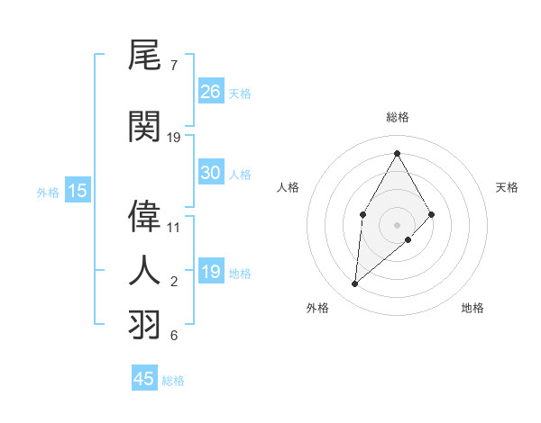 尾関 偉人羽さんの天格は26画の2点!